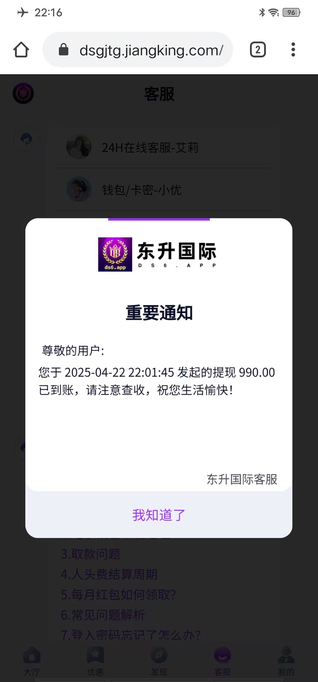 东升 28彩金 爆到千倍大奖 可惜不让提 提现需要上级处理代充问题。