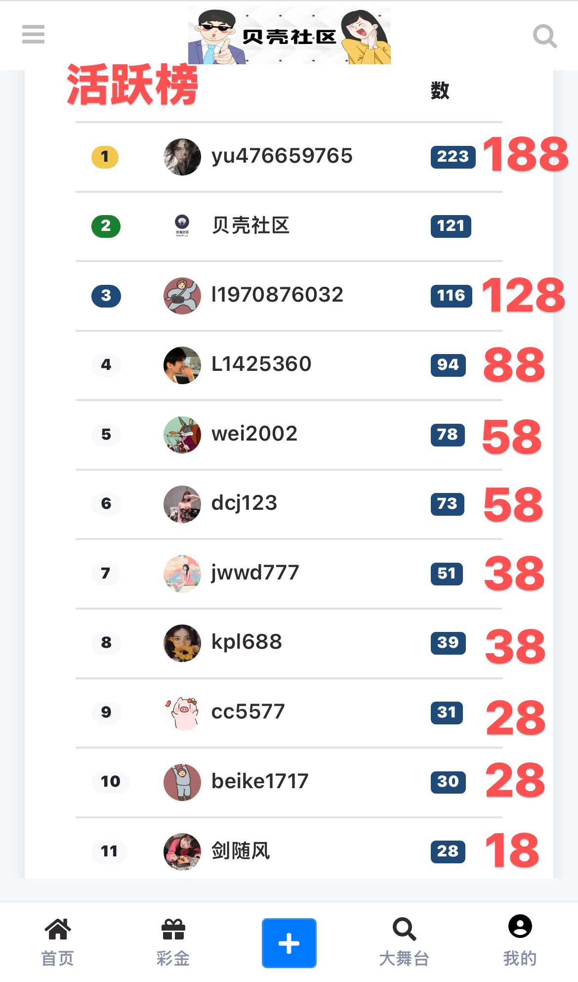 对当月发帖和活跃用户进行嘉奖