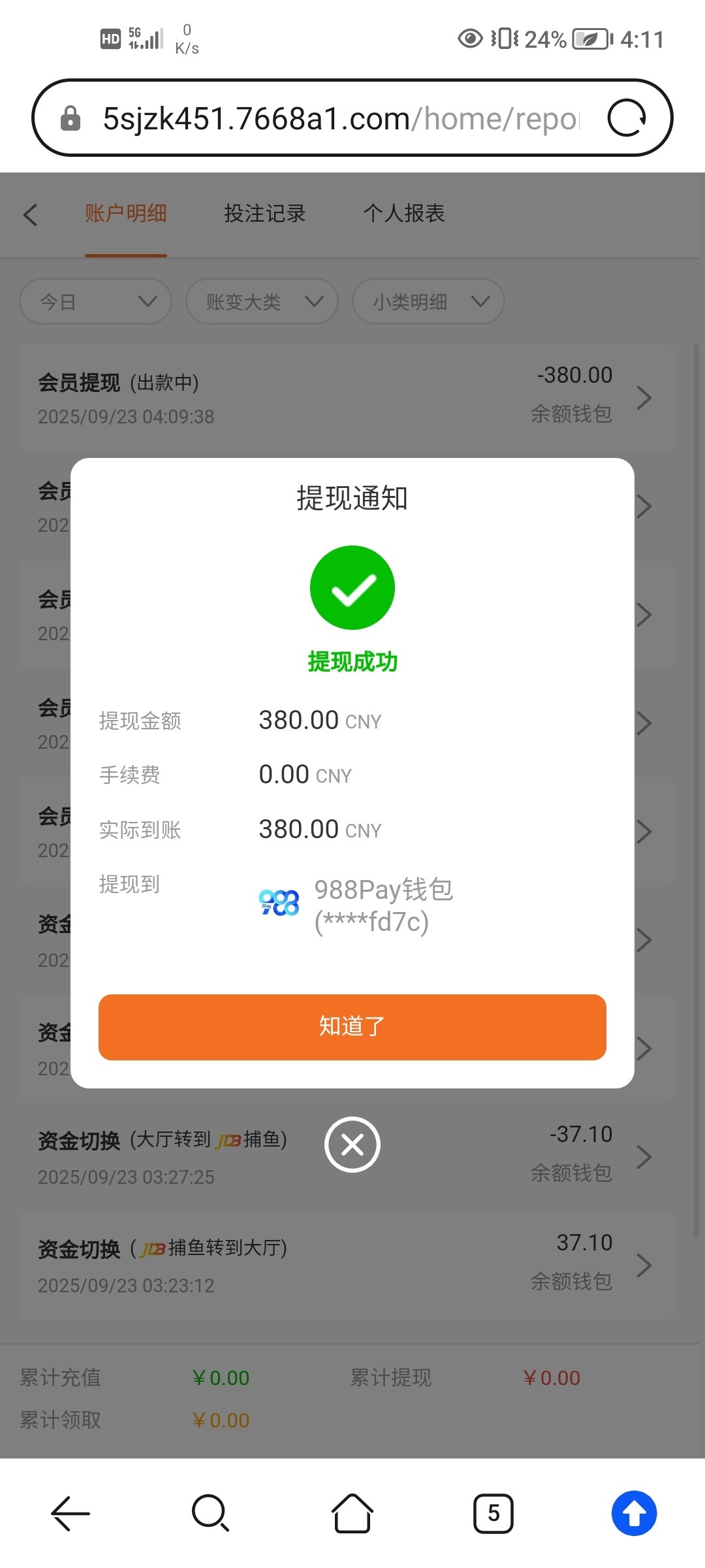 我打到六百没下,下了五百