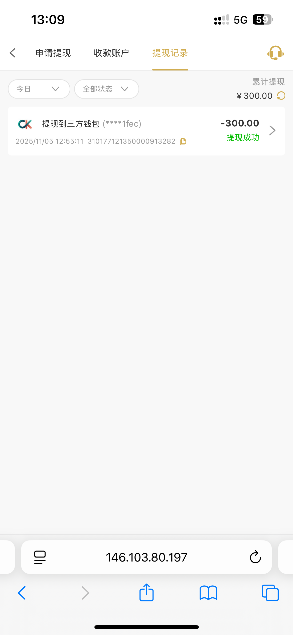 三百到账
