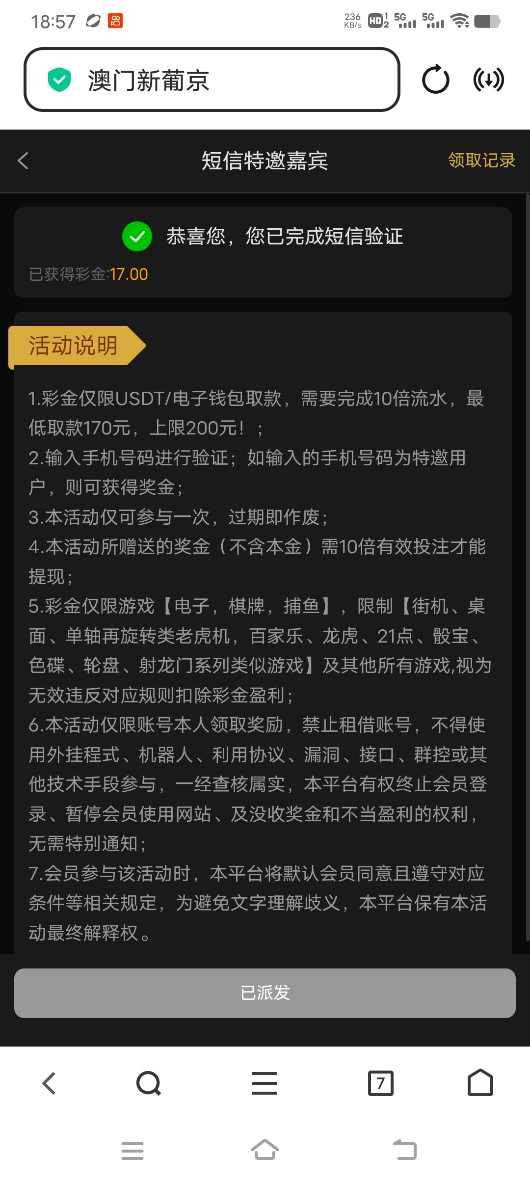 亲测领17 有短信的去领 没短信的也可以碰一下 没有勿喷