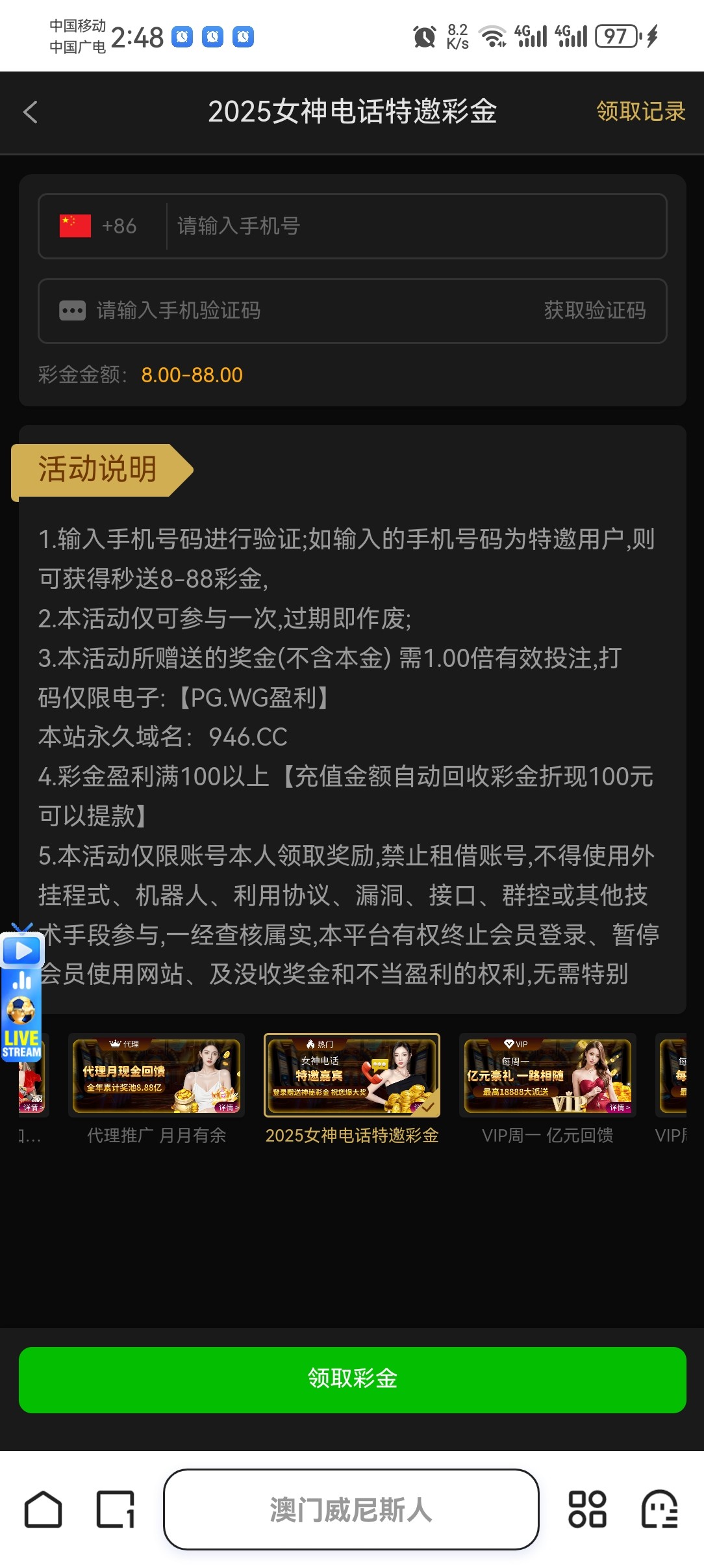 输入手机号试试试不试特邀再注册,白嫖就好,切勿充值