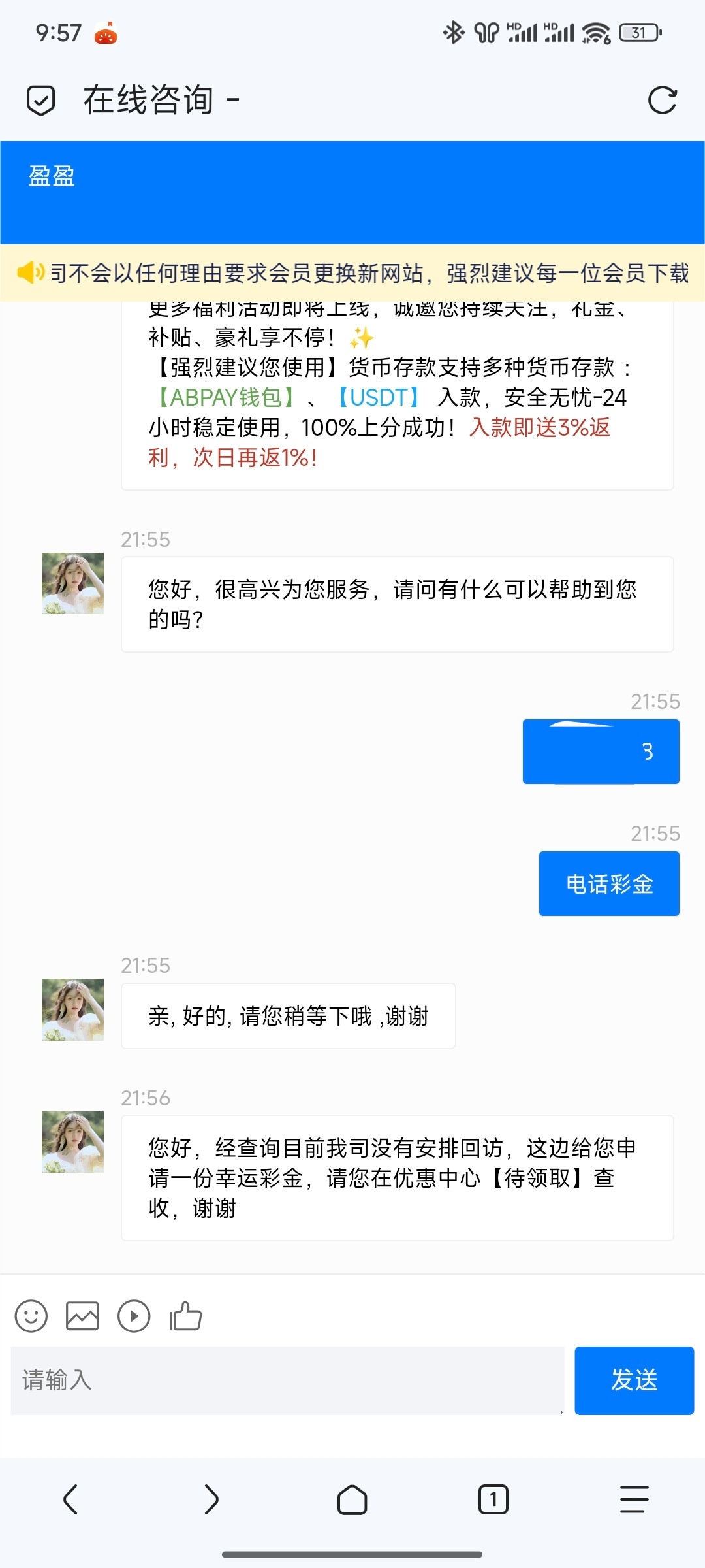 有号的找客服申请电话彩金,不管有没有客服都会申请个神秘彩金,两个号都申请到了