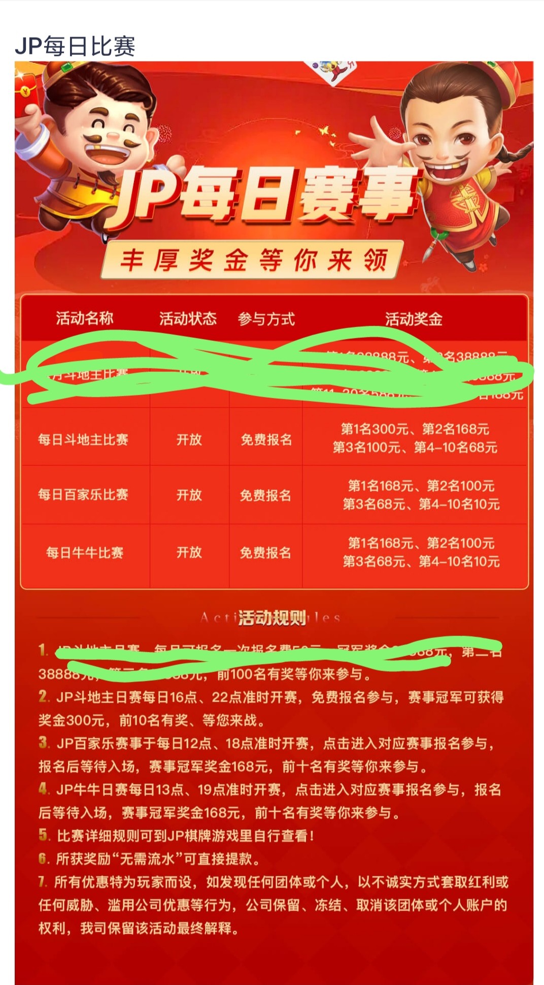 每天免费打比赛 拿排名彩金 详情看下图