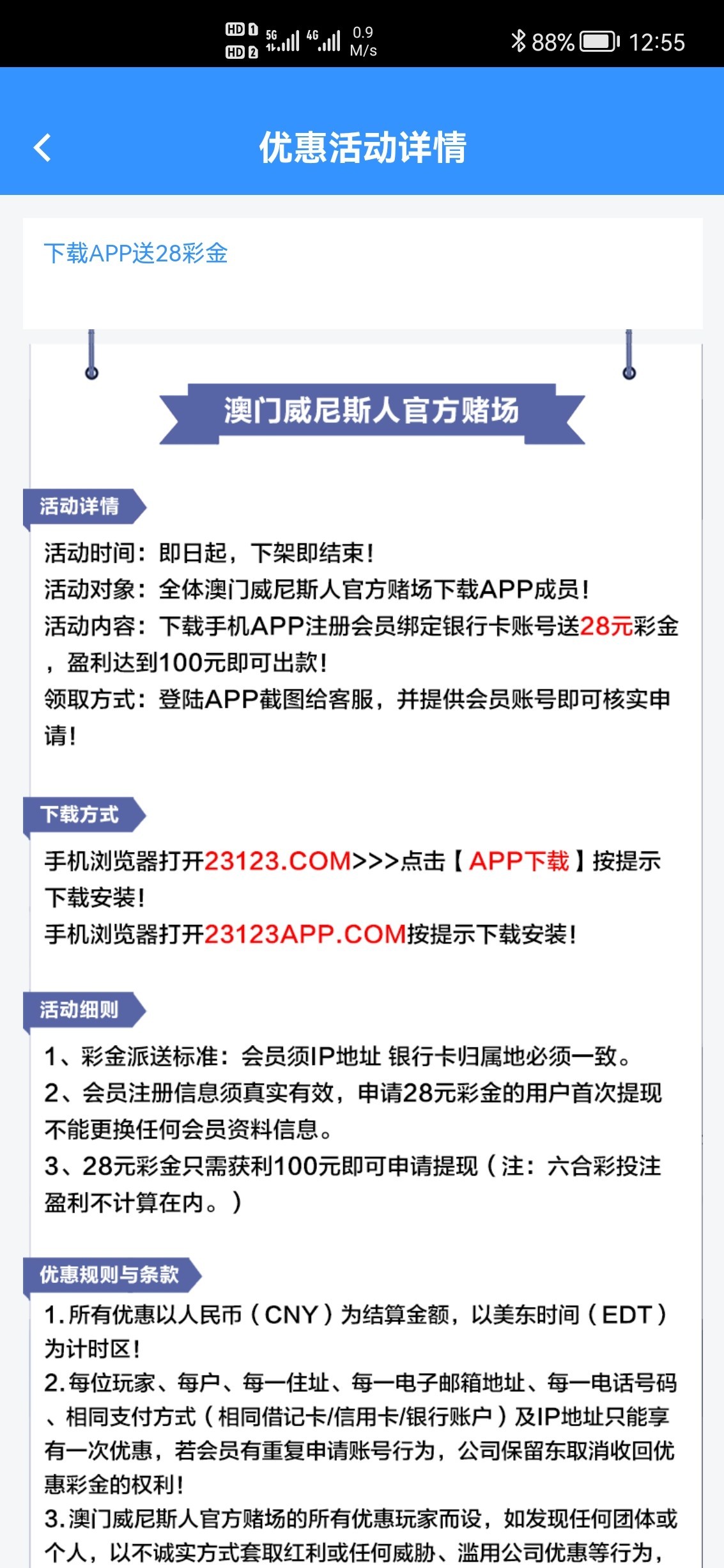下载注册绑卡,把桌面APP截图和账号发给他申请28 一百提,不能打彩票