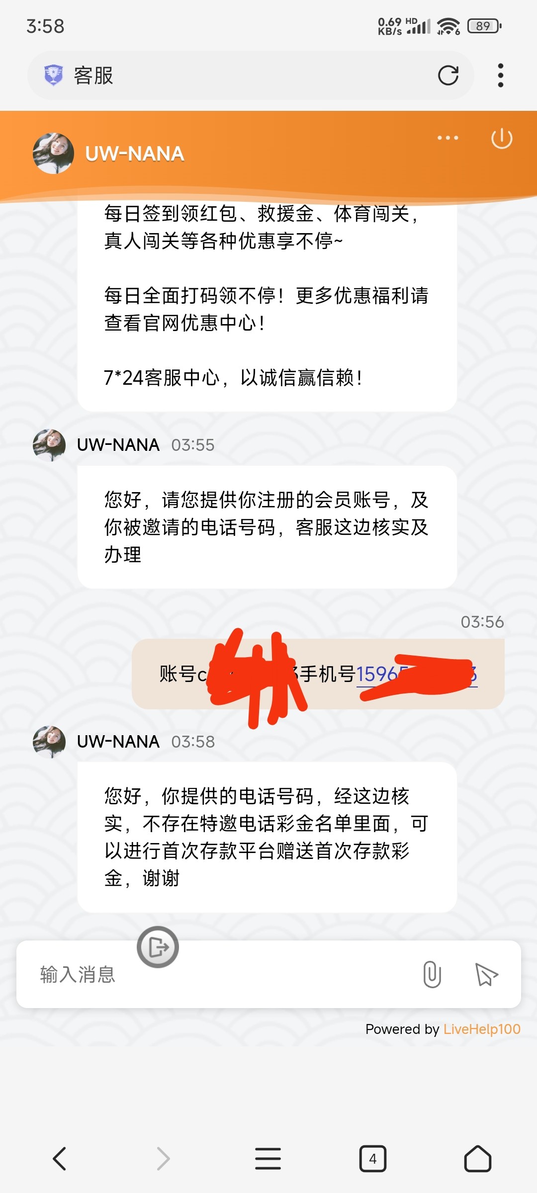 特邀碰瓷:新用户注册好发手机号跟账号给客服查 说接到电话的 他会给你发QQ账号 加QQ核实