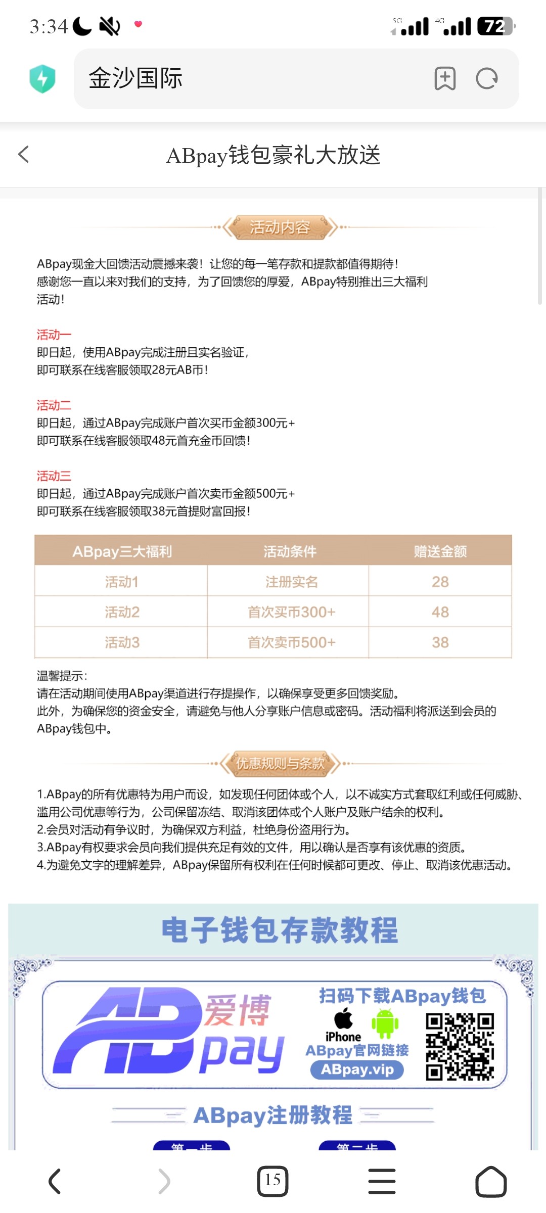 这个不用去了 AB钱包账号冻结 客服死了 有好几个都被冻结了