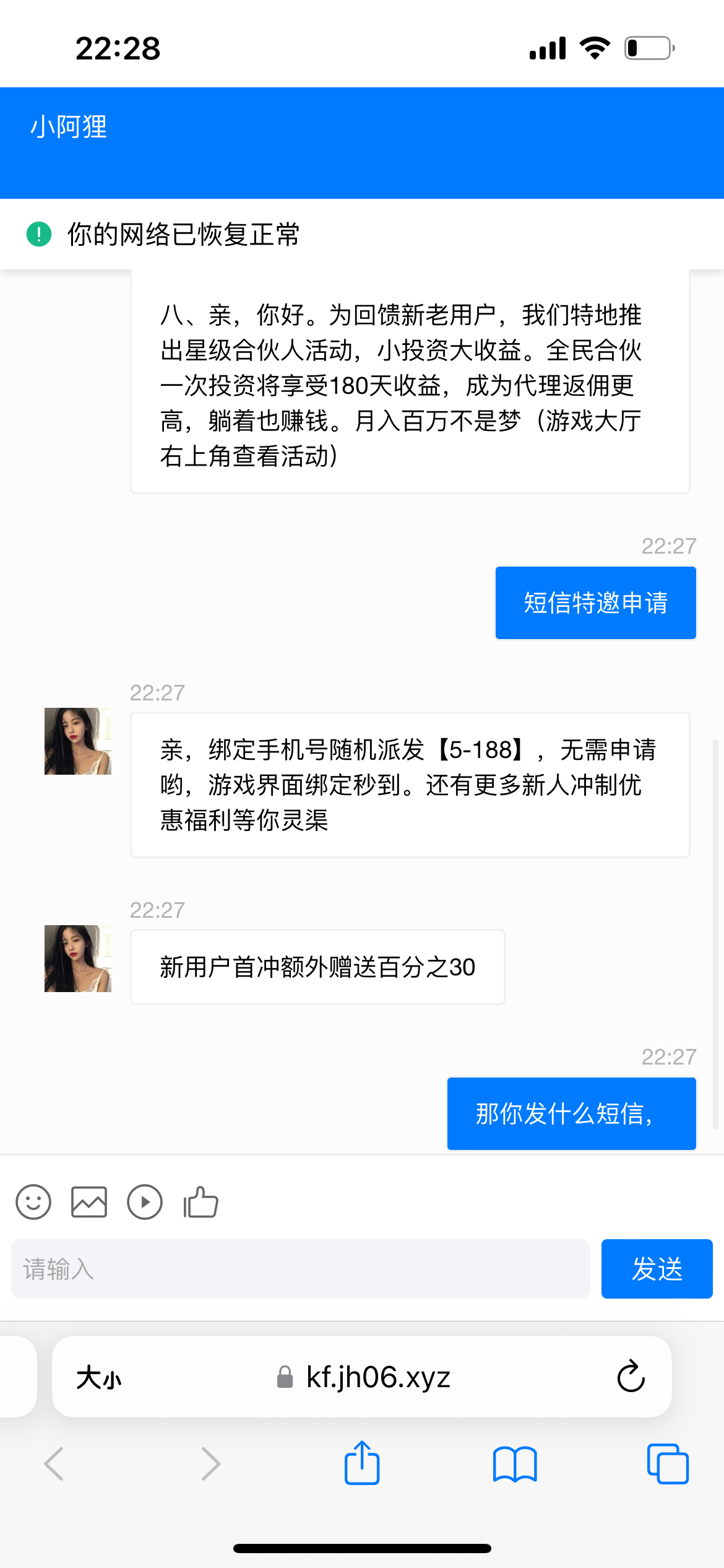 新用户注册联系在线客服申请特邀彩金 发id和手机号让他查 群友投稿两个手机号都领到了 都去试试 游戏和提款限制自行询问客服