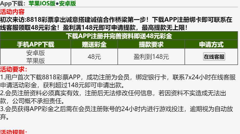 新用户下载APP注册完善信息,联系在线客服申请48彩金。148即可提现。具体自测
